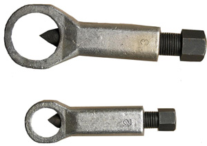 機(jī)械螺母劈開(kāi)器結(jié)構(gòu)比較簡(jiǎn)單,一個(gè)類似單開(kāi)口梅花扳手,其內(nèi)環(huán)圓滑,把柄中間鏤空,內(nèi)有一根頭部錐形的直柄鋼條,把柄尾部有一螺旋旋入桿,旋入桿向內(nèi)旋轉(zhuǎn)時(shí),頂出鋼條,達(dá)到貼緊螺母進(jìn)行實(shí)力,通過(guò)大力頂住螺母,從而使螺母承受不住巨大壓力崩裂,完成劈開(kāi)螺母的作業(yè),當(dāng)然首先需要機(jī)械螺母劈開(kāi)器套住螺母,借助扳手卡住旋入桿尾部的六方頭,予以施加力度,方可輕松劈開(kāi)螺母。