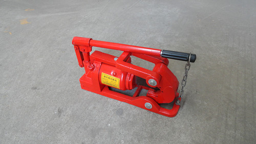 3、 順時(shí)針方向擰緊回油閥桿,然后將撳手上下?lián)鍎?dòng),動(dòng)刀隨活塞向外伸出進(jìn)行切割鋼絲繩,鋼絲繩切斷后,將回油閥桿逆時(shí)針方向旋松,動(dòng)刀自行漸漸返回。